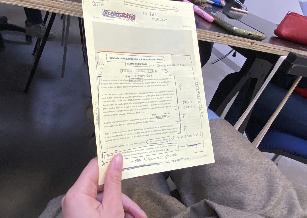 2023 — Animation d’un atelier de formation destiné aux étudiant·es du DSAA Graphisme de l’ESAAT Roubaix. Conception collective d’un dispositif éditorial web, programmation de la mise en page, automatisation de l’export PDF.